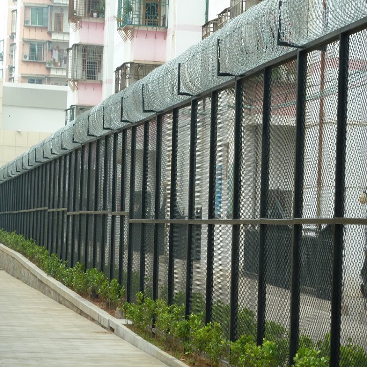監獄菱形孔鋼網墻、監獄圍墻加高護欄網、強制隔離圍網