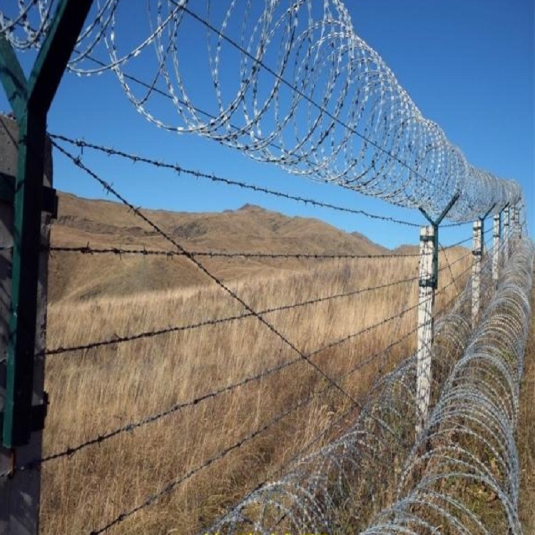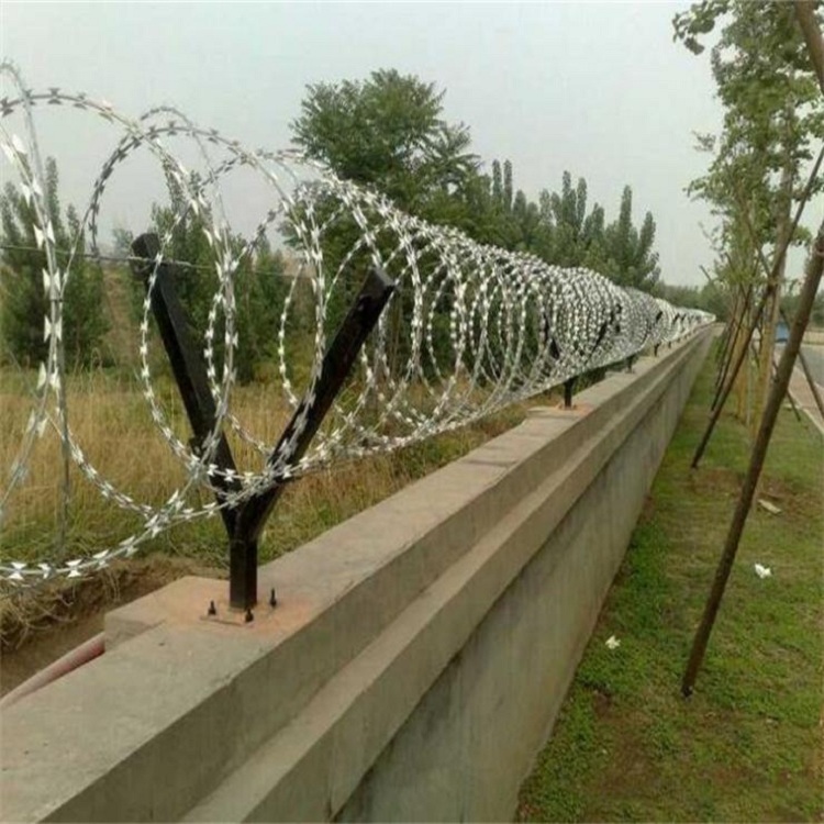 工藝:采用鋼板(刀板)沖壓成型包附于熱鍍鋅鋼絲(芯線)之上,由銳利尖角鍍鋅鋼板或不銹鋼薄板做刀片,高張力鋼絲做芯線組合而成的。