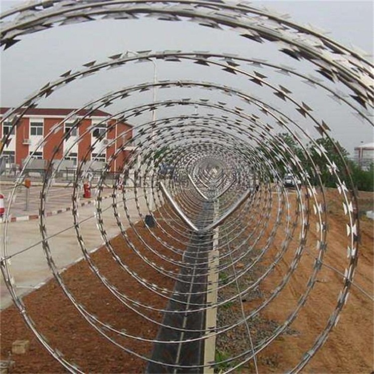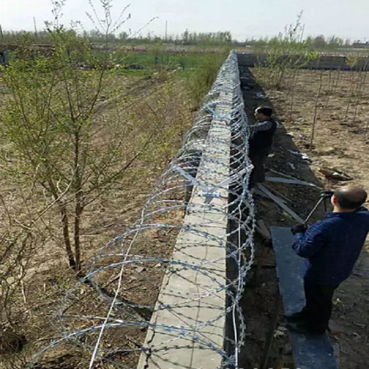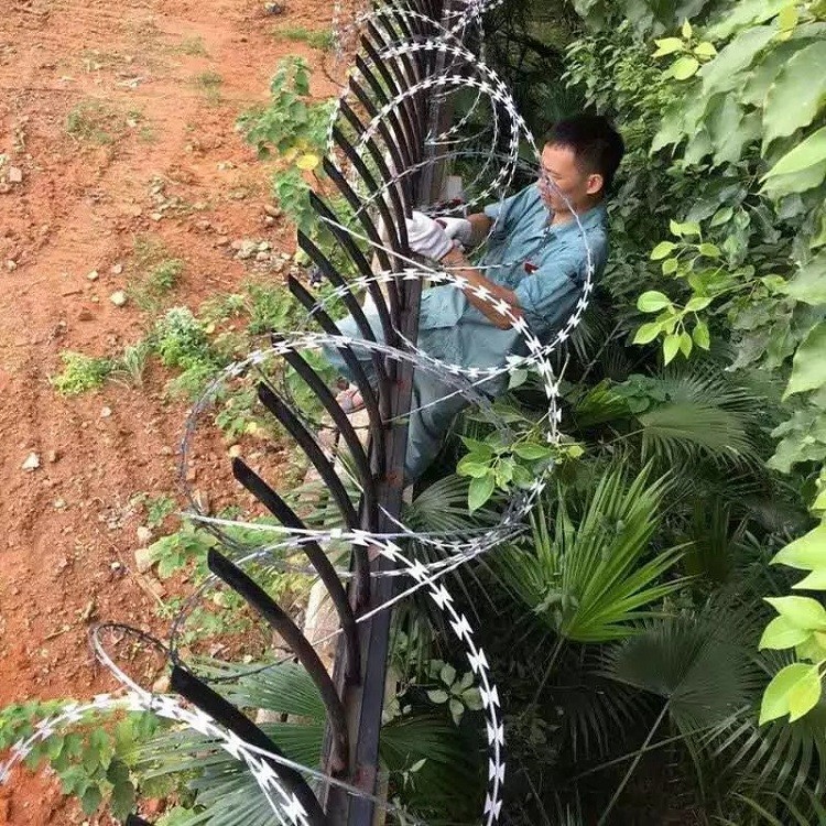 鍍鋅刀刺網(wǎng)和不銹鋼刀刺網(wǎng)安裝的時候,如果是在圍墻上安裝,還得配備V型支架固定,如果安裝在側(cè)面的話也可用扁鐵固定,這個根據(jù)具體的地理形勢安裝。