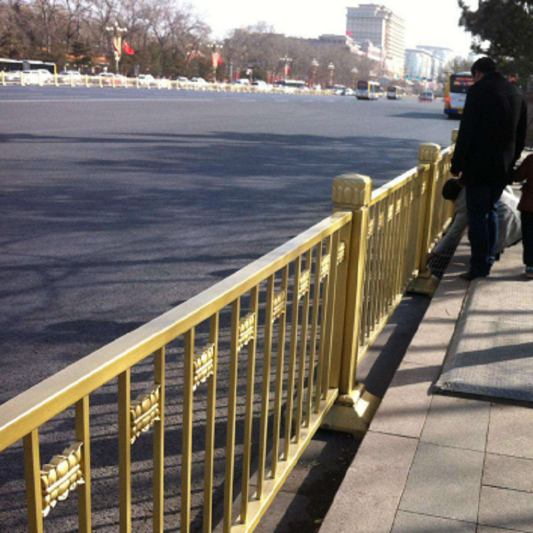金色道路護欄屬于整體剛性鏈接式護欄,內部有嵌入式纜索裝置,外形美觀大氣,性能堅固優良,通過特殊的結構設計可以實現快速拆裝及預留出口的快速開、閉,在對廣場進行區域封閉管理的基礎上,可以快速實現對人流的科學引導。