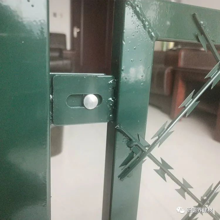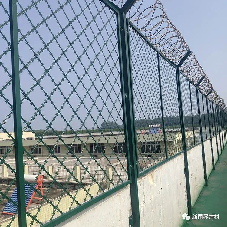 又稱作“Y型安全防御護網”和機場護欄網通用,是由V型支架立柱,加強型焊接片網,安全防盜連接件和熱鍍鋅刀片刺籠組成強度和安全防御性級別很高。應用在監獄,軍事基地等高安全場所。注:如果在監獄護欄網頂部加裝刀片刺絲、刀片刺繩后又很好的增強了安全防護性能。采用電鍍、熱鍍、噴塑、浸塑等防腐形式,具有很好的防老化、防曬、防候等特點。其產品造型美觀、花色多樣,既起到圍欄作用,又起到美化作用。由于具有安全性高、防攀爬能力好,網片連接方式采用特制SBS緊扣件,有效防止人為的破壞性拆卸,橫向四道折彎加強筋,使網面強度顯著增加。