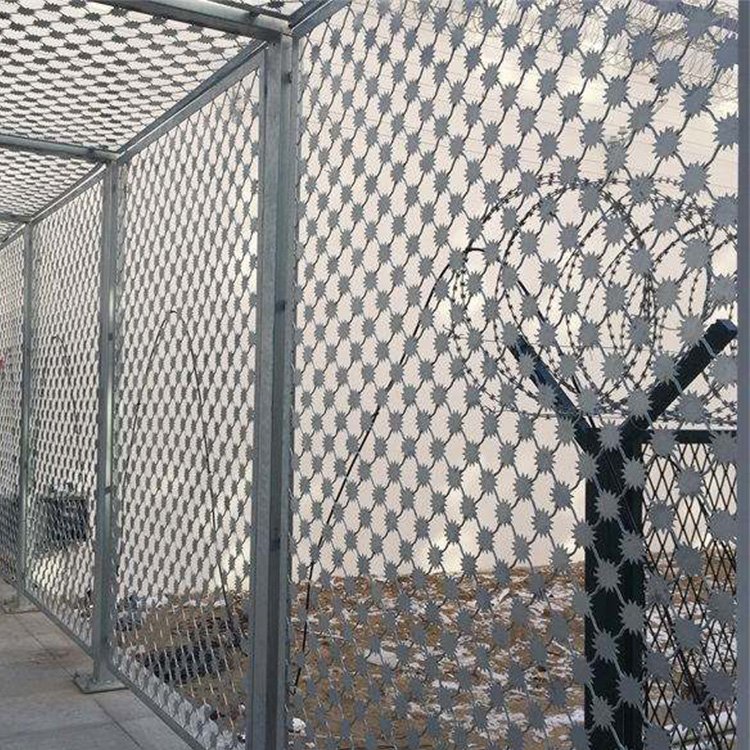 梅花刺片隔離網(wǎng)主要用在監(jiān)獄隔離網(wǎng),機場圍界、主要用于軍事設(shè)施、電力配電站、邊防線、邊防哨所的高安全圍網(wǎng)。還可用于廠區(qū)、倉庫隔離網(wǎng)、交通、通信站、垃圾場、小區(qū)防護、學(xué)校、工廠、農(nóng)場等地的圈禁防護。