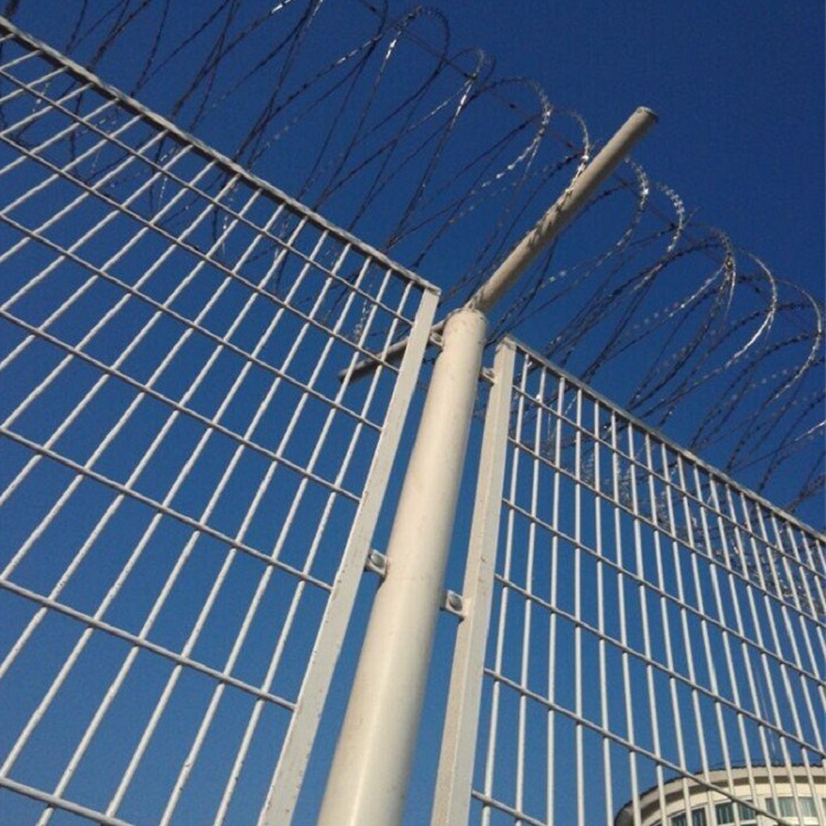 主要是采用高強度的刀片刺網與普通防護網的結合,由V型支架立拄,加強型焊接片網,安全防盜連接件和刀片刺網組成.刀片刺網是一種新型防護網,由銳利尖角鍍鋅鋼板或不銹鋼薄板做刀片,鋼絲做芯線組合而成的防護器材。