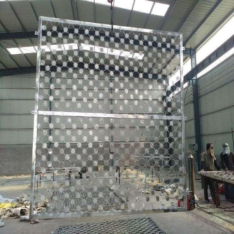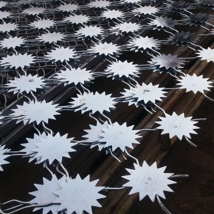 梅花刺網具有美觀、經濟實用、防阻效果好、施工便利等優異特點。是用氬弧焊將梅花形刺片焊接在美格網的節點上,形成刺形保護,有效的防止了手握腳攀。