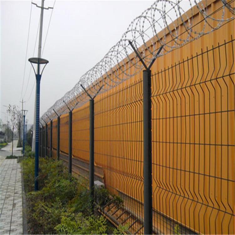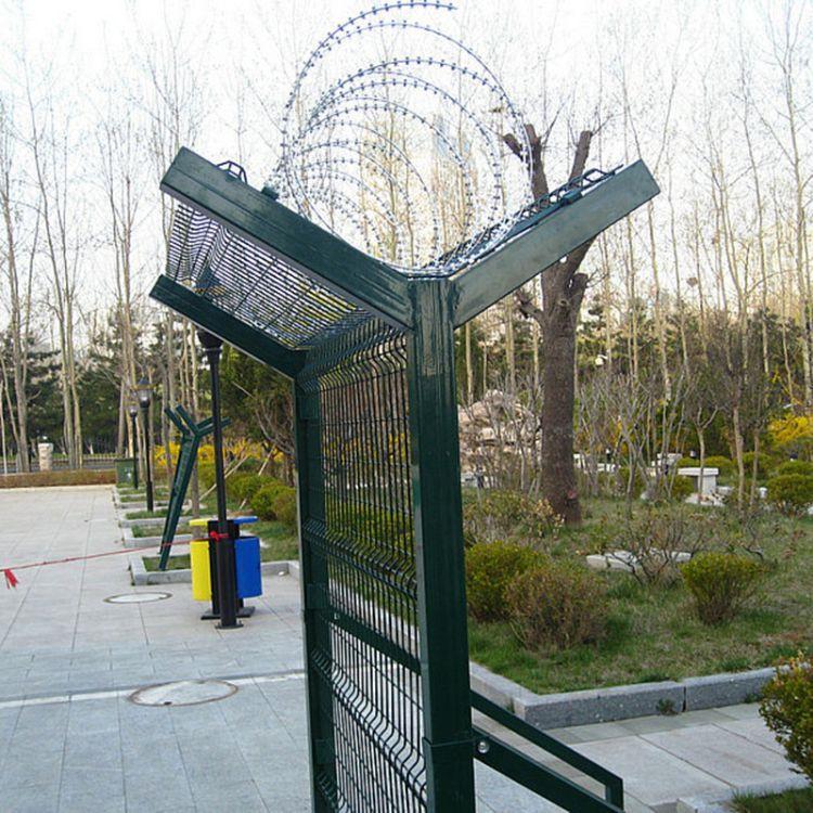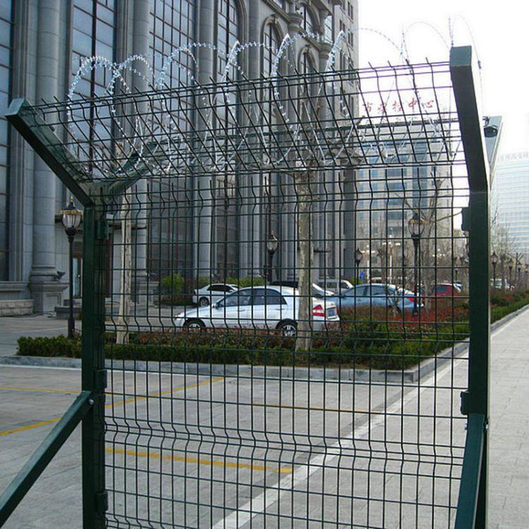 是由V型支架立柱加強型焊接片網,安全防盜連接件和熱鍍鋅刀片刺網組成強度和安全防御性級別很高。被廣泛應用在機場,軍事基地等高安全場所。安全防盜接頭和熱浸鍍鋅刀片是具有較高強度和安全保護水平的柵欄網。