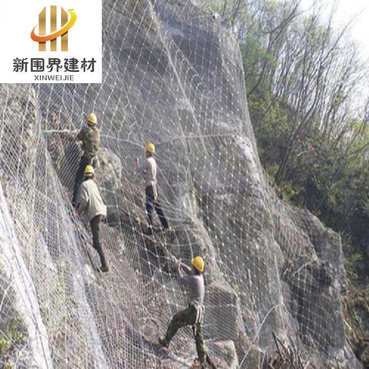防碎網@護坡防護網@邊坡防護網,網孔均勻,網面平整,編織簡單,美觀大方,網絲優質,網幅較寬,不易腐蝕,壽命較長,實用性強。通過絲網組成的各個部分系統作用把防止落石滑落或者把落石控制在一定范圍內。