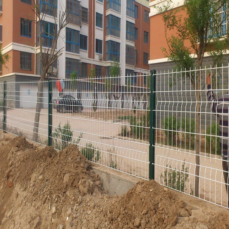 是由桃形立柱和三角折彎護欄網組合,網片絲徑3.5~8mm 網孔多為長方形:常用7.5*15cm 網片高度1,。8m~~2.5m,長度多為3m,立柱尺寸:常用5cm*7cm 7cm*10cm 厚度1mm ,表面多浸塑處理,顏色:立柱和網片多用不同顏色,如黃色,藍色,白色,紅色等 兩兩組合,更顯美觀。立柱特征:立柱壁厚為1.00mm,板材成型通過冷彎和冷軋。其結構簡單,形狀為規則的半橢圓型,安裝方便。柱體上的掛鉤由缺口分為幾部分并沿柱體縱向均勻地分布于柱體兩側。掛鉤板內彎成拱型與橢圓型柱體的直邊相切,有效的防止了被撬開,保證了護欄的安全性。