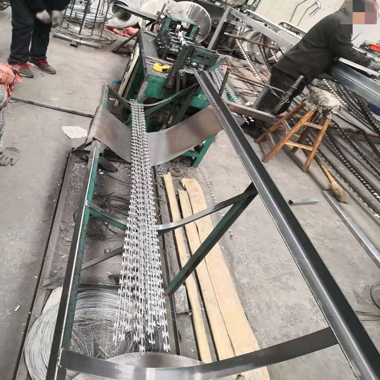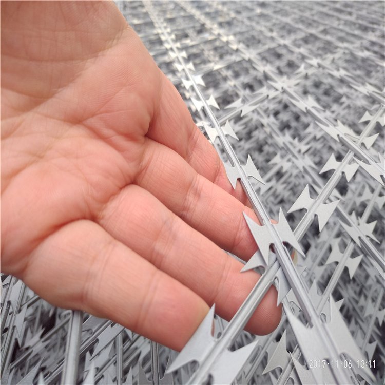 刀片刺網、直線刀片刺網、焊接刀片刺網是一種近年來防護、隔離能力較強的新型產品。它采用鋼板沖壓成型包附于鋼絲(筋絲)之上而成。鋒利的刀型刺既美觀又讓人不寒而粟。