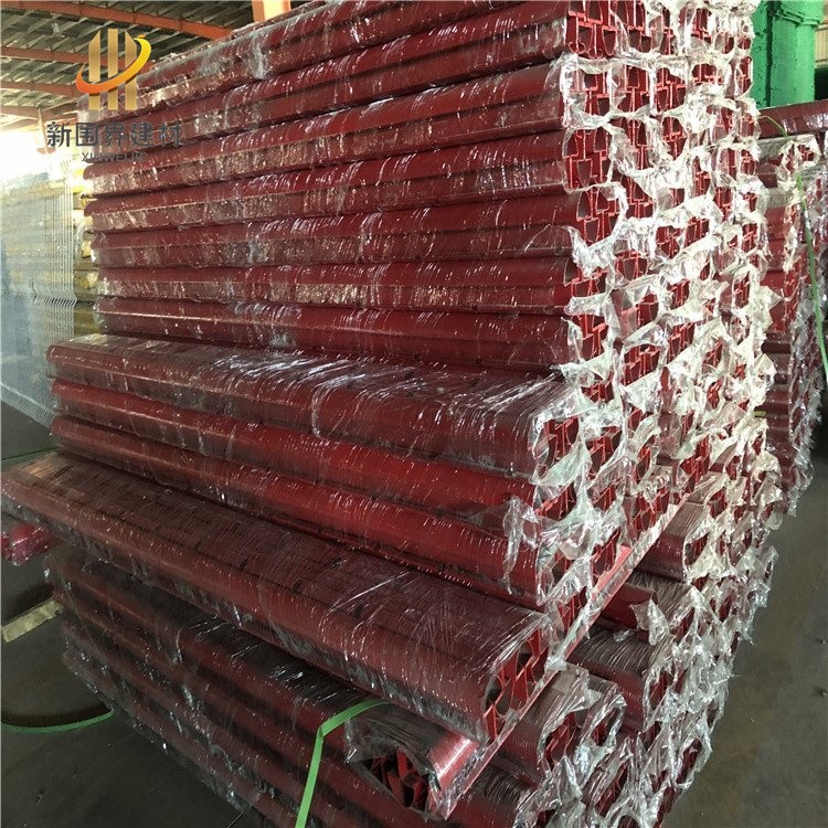 桃型立柱護欄網多是由桃形立柱和三角折彎護欄網組合,網片絲徑3.5~8mm 網孔多為長方形:常用7.5*15cm 網片高度1,。8m~~2.5m,長度多為3m,立柱尺寸:常用5cm*7cm 7cm*10cm 厚度1mm ,表面多浸塑處理,顏色:立柱和網片多用不同顏色,如黃色,藍色,白色,紅色等兩兩組合,更顯美觀。立柱特征:立柱壁厚為1.00mm,板材成型通過冷彎和冷軋。