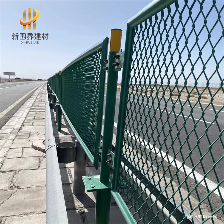 菱形孔防眩目隔離網、高速公路護欄網、綠色鋼板網