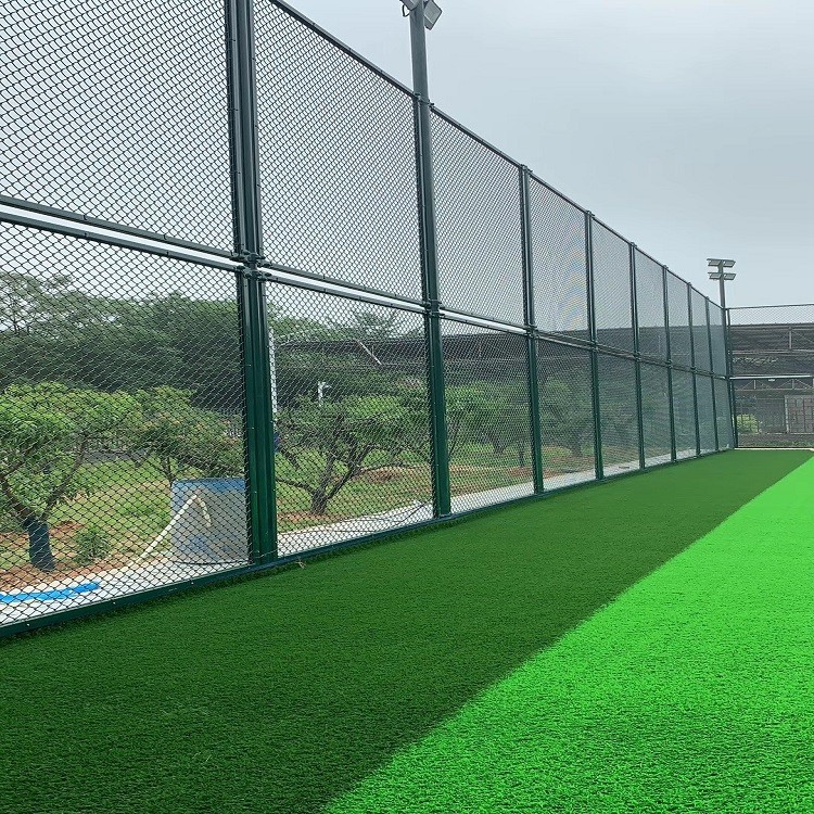 球場圍網一般都是選用勾花網,其生產是用勾花網機把金屬絲鉤編而成,可分為折邊縮把,擰邊鎖把兩種。河北新圍界定制熱線:18033766898
