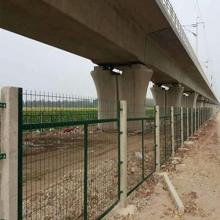 高鐵橋下隔離網,通常采用焊接鋼網四周焊有加強邊框與混凝土立柱組裝而成,連接選用防拆緊固件固定,主要款式有8001和8002兩種。高鐵橋下隔離網主要用于鐵路、高鐵、城際鐵路兩側的隔離防護。
